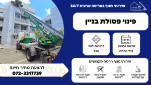 אל תתפשרו על איכות ומקצועיות! פנו עוד היום לא.ב מנופים להזמנת שירותי פינוי פסולת בניין עם מנוף הרמה מקצועי והבטיחו אתר עבודה נקי ובטיחותי. צוות המומחים שלנו כאן כדי להעניק לכם ייעוץ מקצועי ולספק את הפתרון המדויק ביותר לצרכים שלכם. חייגו עכשיו: 072-3317739!
